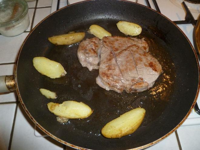invité se midi , débrousaillaige chez l'amie de 91 ans il me prépare des rognons sauce madère avec patates rizolé et un petit rosé