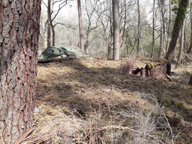 On laisse quelques secteurs avec de la mousse très claire sans nylon pour l'audition de " l'appeau de cabane", idem sur la zone de sol (4m×3)