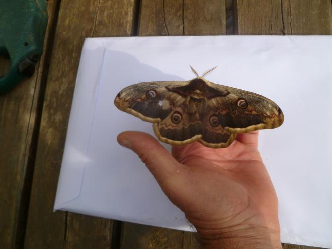 Grand paon de nuit femelle il me semble merveilleux papillon! sa chenille est magnifique!!!