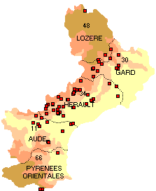 | (11) Aude (30) Gard (34) Hérault (48) Lozère (66) Pyrénées-Orientales | |