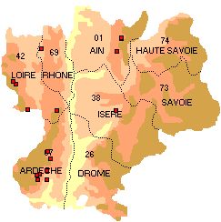 | (01) Ain (07) Ardèche (26) Drôme (38) Isère (42) Loire (69) Rhône (73) Savoie (74) Haute-Savoie | |