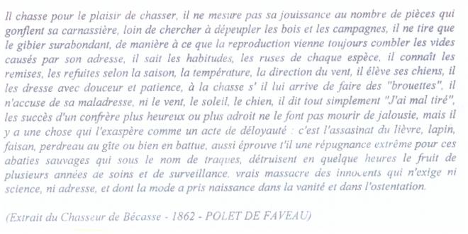 Bonjour, bonjour, bonjour, ci-joint, une éthique de chasse du 19ème siècle à méditer....